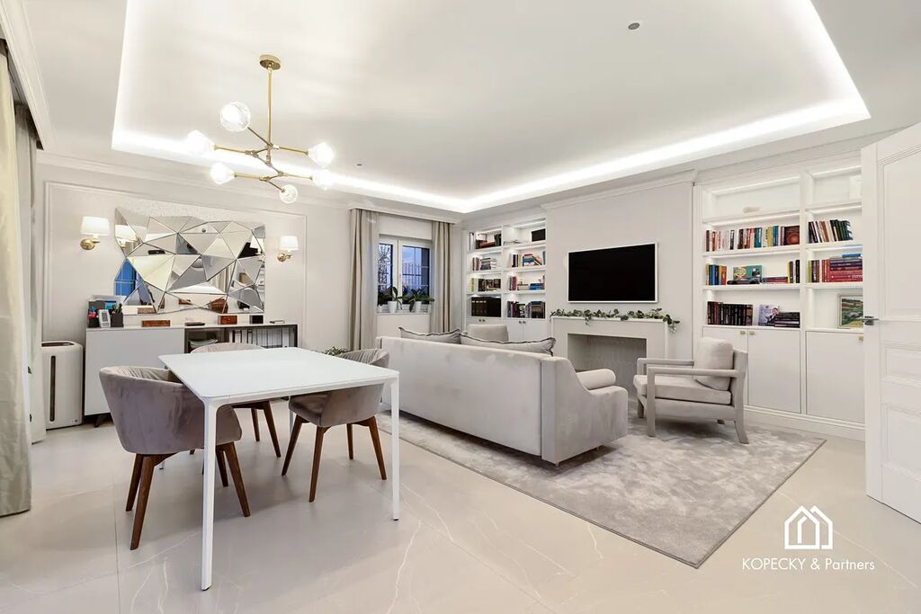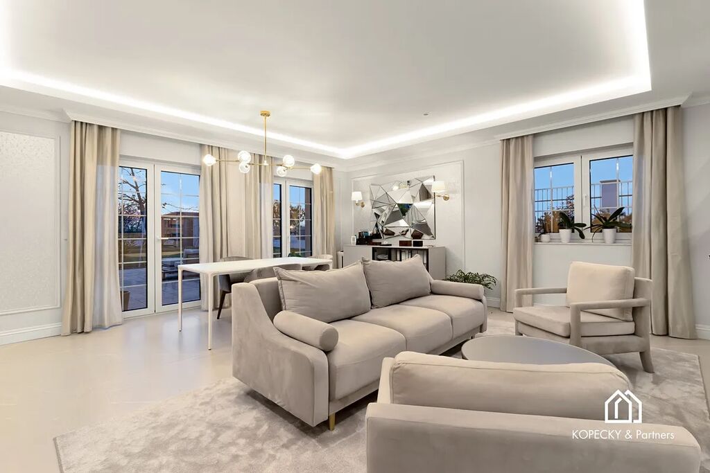 Celý dům je zařízen v duchu sofistikované elegance – od ikonických svítidel navržených Zahou Hadid, přes jídelní stůl Bonaldo pro deset hostů, až po nábytek a osvětlení od značek Eichholz, Moooi či Cattelan Italia. Každý detail byl pečlivě vybrán tak, aby tvořil harmonický celek.