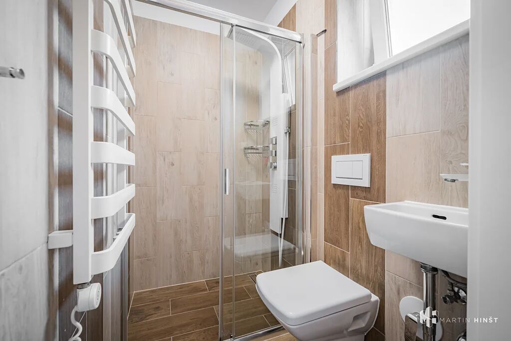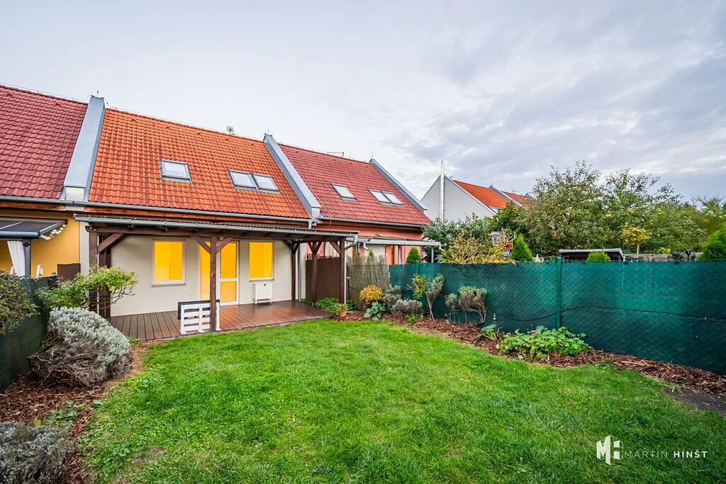 V přízemí najdete prostorný obývací pokoj propojený s kuchyní, která prošla v roce 2022 modernizací včetně nových spotřebičů. Z obývacího pokoje je přístup na zastřešenou dřevěnou terasu a dále na zahradu o výměře 108 m² se zahradním domkem. V tomto patře se nachází také technická místnost s místem pro pračku a sušičku, koupelna se sprchovým koutem a WC, a samostatný pokoj vybavený prostornými skříněmi.