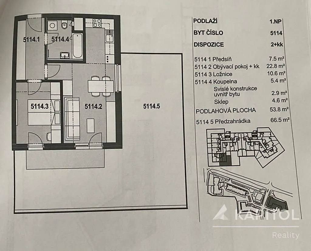 PRONÁJEM velice světlého a prakticky řešeného bytu 2kk s užitnou plochou bytu 52,4m², sklepem 4,6m² a předzahrádkou 66,5m² ve velice žádané lokalitě Letňany.