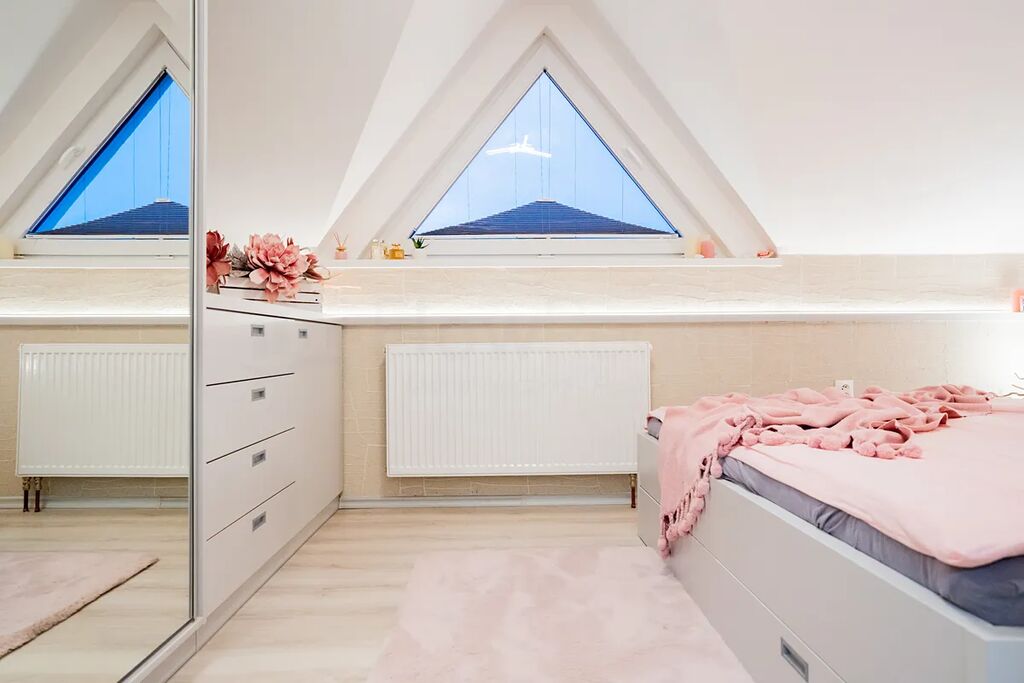 Kuchyňský kout a obývák jsou orientovány na východ, abyste si mohli vychutnat ranní kávičku s vycházejícím sluncem! ☕ Naproti tomu ložnice je směrem na západ = romantické západy slunce jsou tedy zajištěny!