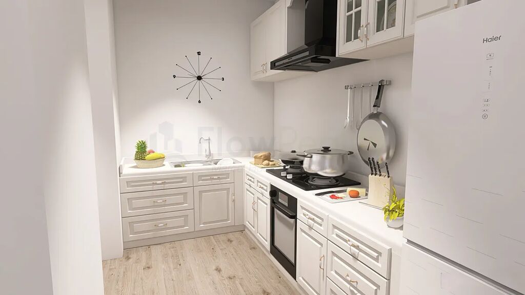 Byt je kompletně vybavený. Stačí jen pár dodělávek v obýváku.