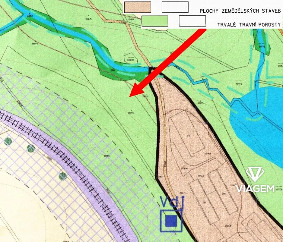 - Parcelní číslo 3183 (7789 m², 17% podíl = 1298 m², trvalý travní porost)