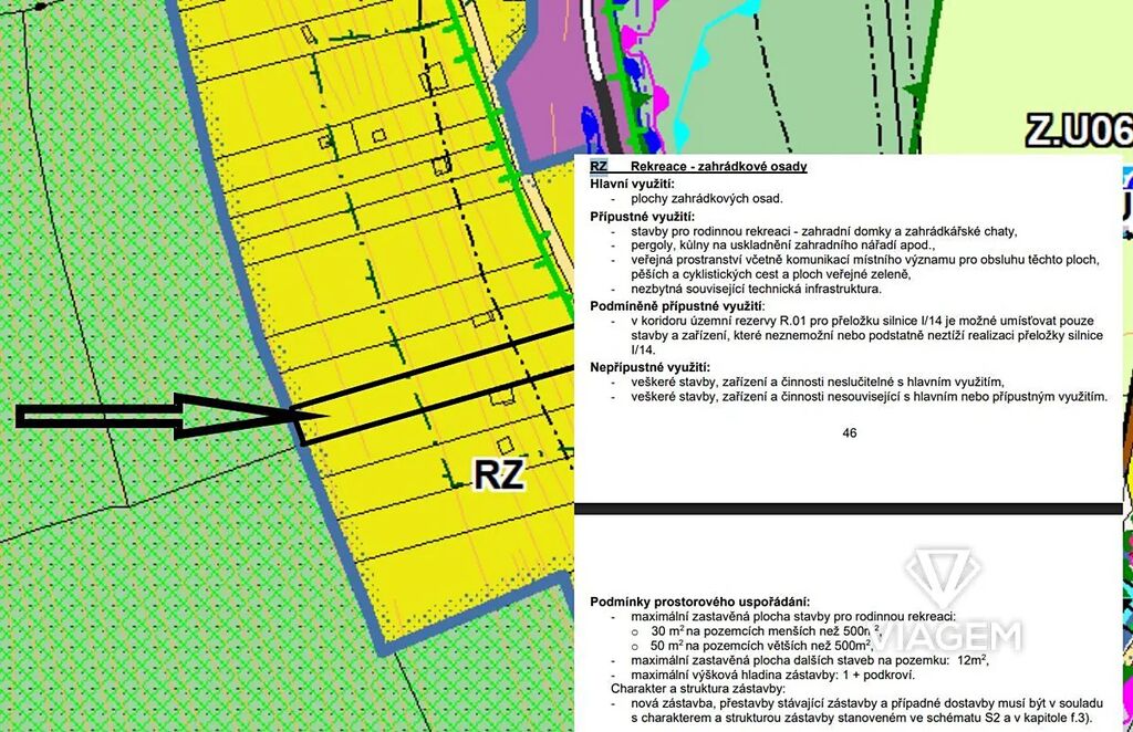 Druh pozemku: Zahrada (územní plán: RZ – rekreace, zahrádky)