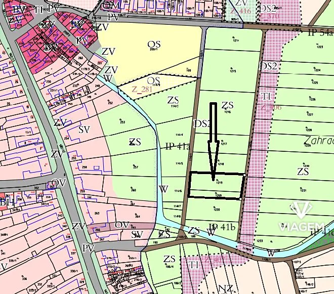- Parcelní číslo 1219 (1674 m², 25% podíl, LV 354)
