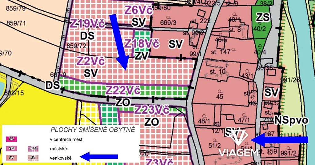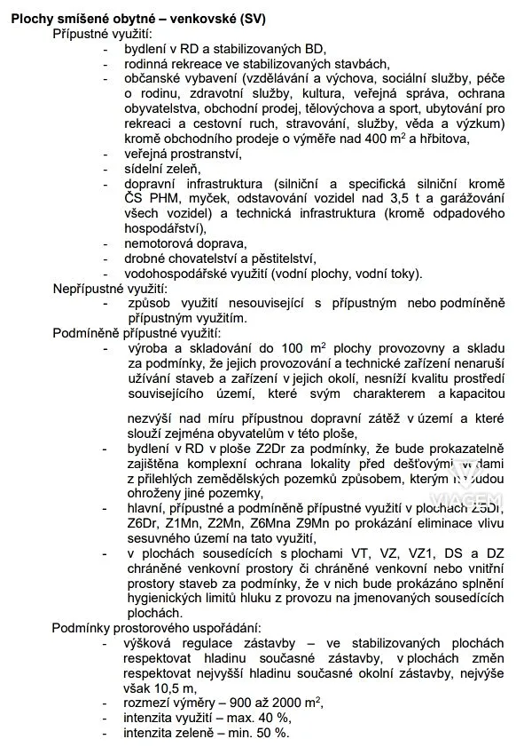 Stavební pozemek je v územním plánu označený jako "SV - Plochy smíšené obytné - venkovské".