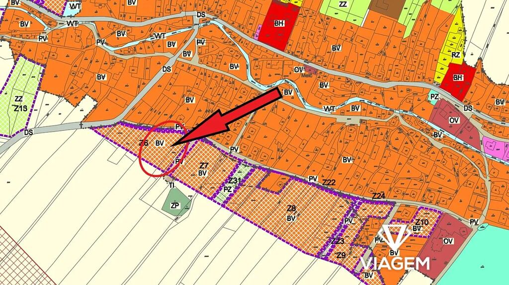 Podle územního plánu se jedná o zastavitelnou plochu pro rodinné bydlení, přičemž inženýrské sítě jsou k dispozici na hranici pozemku. Přístup je zajištěn novou asfaltovou komunikací.