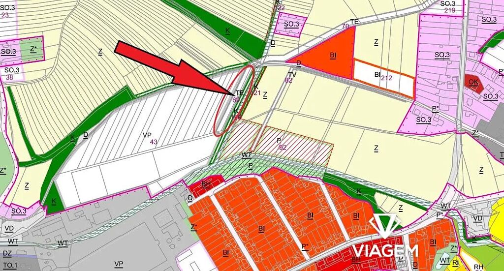 o Poznámka: V návrhu na průmyslovou zónu, vede zde velmi vysoké napětí