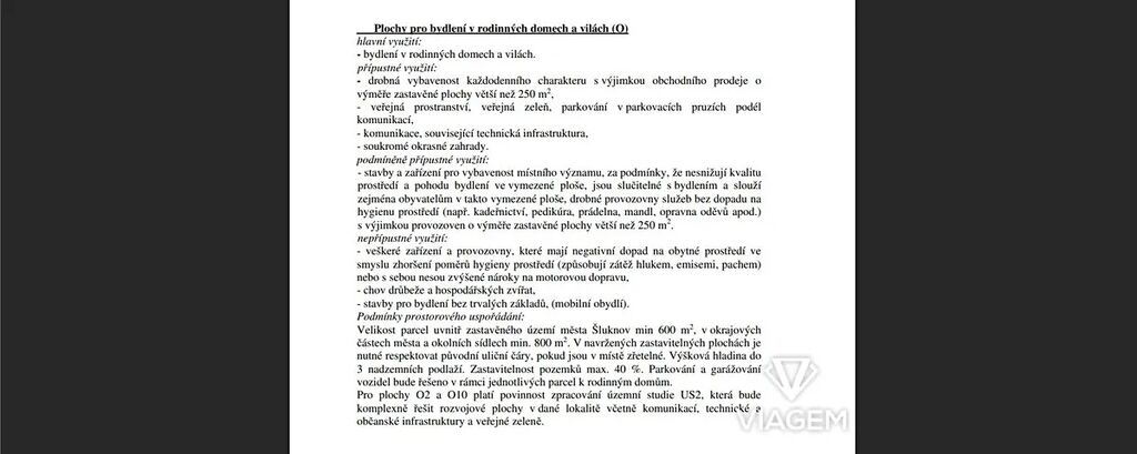 Pozemek je zastavitelný s připojením na dostupnou síť el. energie, voda i kanalizace. Na pozemku lze postavit rodinný dům o 3 nadzemních podlažích,  kdy koeficient zastavění představuje 40% plochy pozemku. Parkování  a garážové stání je řešeno po individuálně jednotlivých parcelách. Je zde možnost táke vybudovat drobnou provozovnu. Veškeré další informace jsou obsažené ve fotodokumentaci pozemku (textová část ÚP).