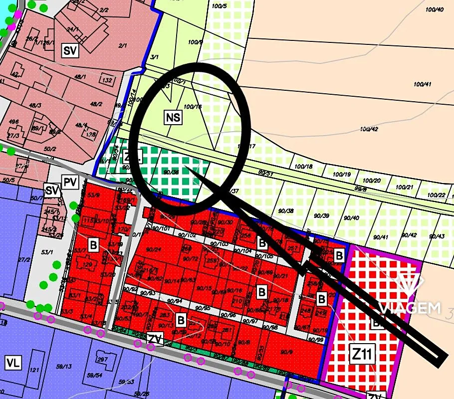 Tento pozemek je zapsán na LV 943 pod parcelními čísly 90/36 a 100/16  o celkové výměře 4 366 m2.