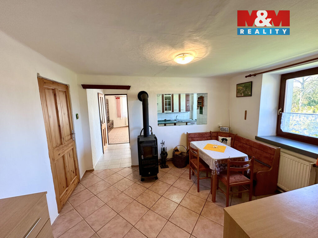 Nabízíme k prodeji rodinný dům / chalupu v klidné části obce Kajetín, ideální pro milovníky přírody a venkovského života. Nemovitost o užitné ploše 105 m² je samostatně stojící a nachází se na pozemku o rozloze 980 m² s krásným výhledem na rybník. Chalupa disponuje smíšenou konstrukcí a je ve velmi dobrém stavu. V 1. nadzemním podlaží naleznete dva prostorné pokoje, kuchyni, jídelnu, komoru, koupelnu s vanou, sprchovým koutem a WC. Z tohoto podlaží vedou schody do sklepa a do 2. NP, kde se nacházejí dvě ložnice a lodžie. Na pozemku je terasa, pergola a dílna. Voda je čerpána z obecní studny, odpad řešen septikem s přepadem do trativodu, vytápění krbovými kamny s výměníkem a rozvodem do radiátorů, TUV bojler. Občanská vybavenost je dostupná v nedalekém Choustníku. Tato nemovitost je ideální volbou pro ty, kteří hledají klid a krásu venkovského prostředí, je vhodná pro rekreační účely i pro trvalé bydlení.