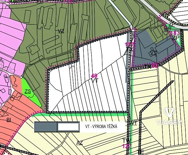 Pozemky jsou dle územního plánu určený pro těžkou výrobu a průmyslové využití. Pozemek se nachází v průmyslové zóně s vynikající dopravní dostupností