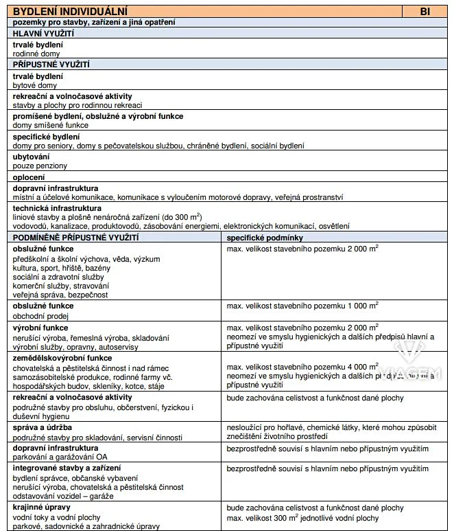 Koeficient zastavitelnosti stavbami je 20 %, tj. 82 m2. Min. koeficient zeleně je 60%.