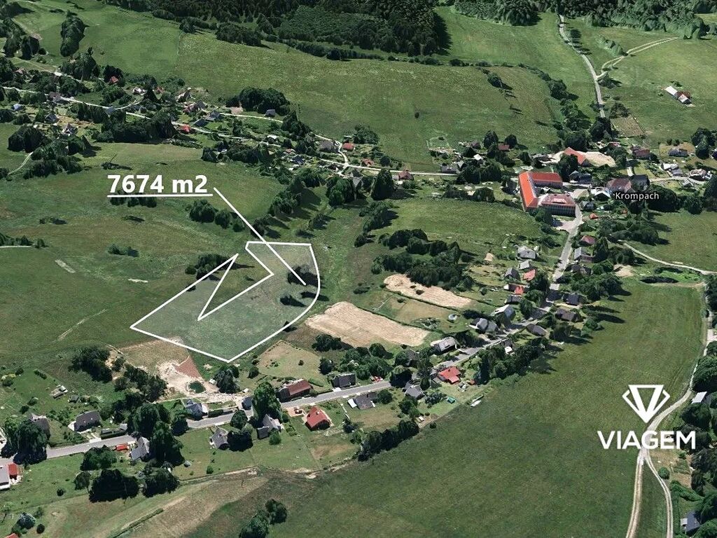 V exkluzivním zastoupení majitele nabízíme pozemek o výměře 7674 m2 v klidné okrajové části obce Krompach, okres Česká Lípa.