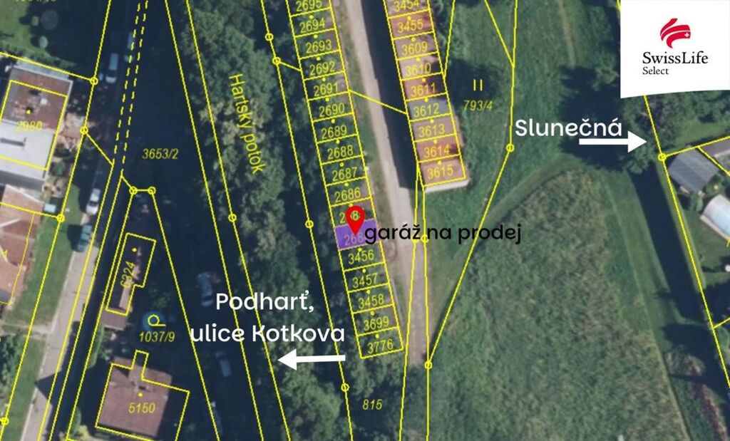 Garáž je suchá, kolaudovaná v roce 1973, od té doby ve vlastnictví stejných majitelů. Parcela pod garáží Parc.č. 2684 je v osobním vlastnictví (čili součástí prodeje).