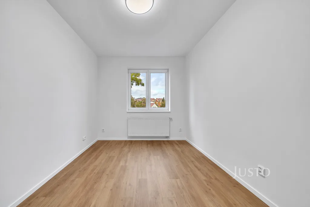 Hned po otevření dveří Vás přivítá světlý a vzdušný interiér s moderními podlahami a velkými okny, která propouští dostatek denního světla do všech místností. Byt má tři neprůchozí ložnice – ideální řešení pro rodiče i děti, které se tak mohou těšit na svůj bezpečný prostor. Obývací pokoj propojený s kuchyňským koutem, ze kterého můžete vstoupit přímo na rozlehlou terasu o ploše téměř 11 m². Tato terasa navíc nabízí dostatek místa pro rodinné snídaně, letní grilování nebo večerní posezení. Další bonus představuje útulný balkon orientovaný na jih, odkud můžete pozorovat krásy okolní zeleně.