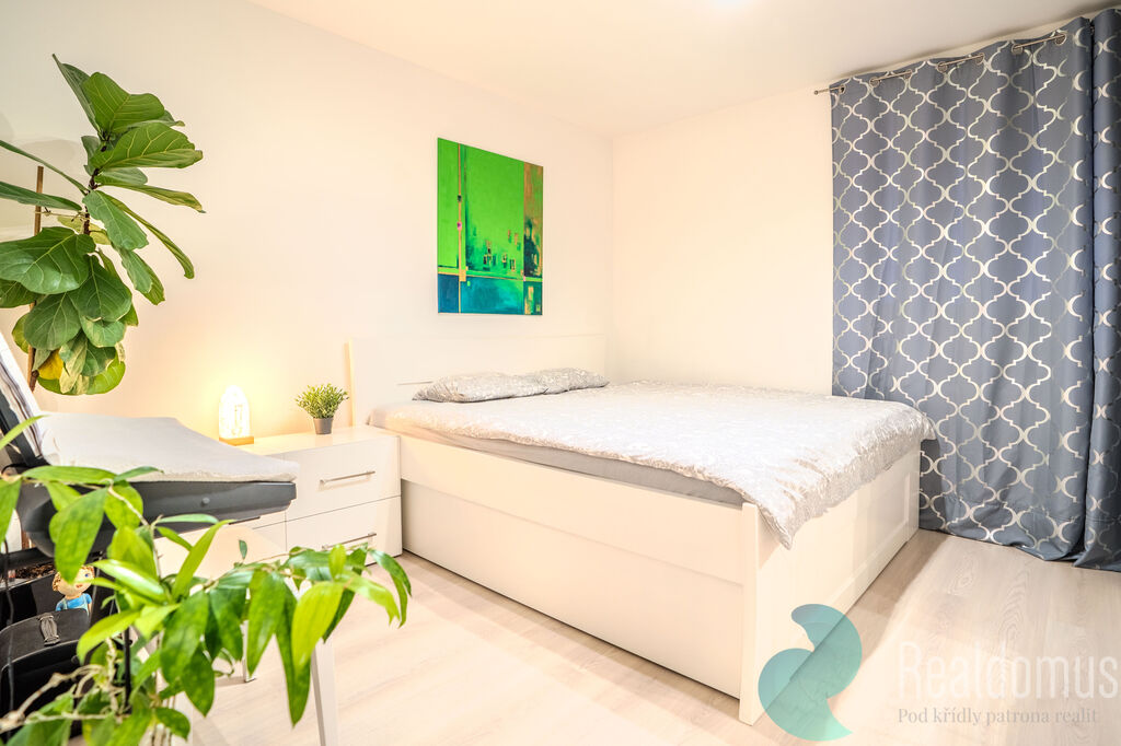 V přízemí se nachází vstupní chodba se zádveřím, samostatné WC, technická místnost a světlý obývací pokoj s kuchyňským koutem a jídelnou, odkud je přímý vstup na venkovní terasu o velikosti 12 m² a do zahrady o rozloze cca 100 m². Zde najdete také bazén a zahradní domek, ideální pro uskladnění nářadí či jako letní zázemí.