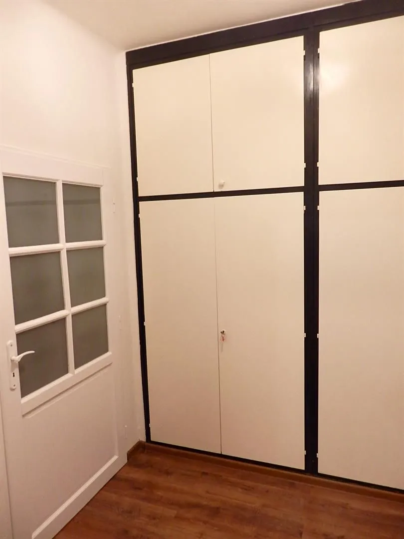 Vstupem do bytu se ocitnete v chodbičce propojené s halou o ploše 10,5 m2, z které se hned po levé straně od vstupu dostanete do kuchyně o ploše 3,14 x 2,63 m ( 8,3 m2 ) s kuchyňským koutem, plynovým sporákem, digestoří, mikrovlnkou, varnou konvicí, dřezem, novou lednicí s mrazákem a novou myčkou nádobí. Z kuchyně je ještě vstup do menší komory. Před kuchyní je umístěna koupelna o ploše 1,8 x 1,6 m ( 2,9 m2 ) s vanou, umývadlem se zrcadlem a pračkou. Hned vedle koupelny se nachází samostatná toaleta. Z předsíně je po levé straně vstup do jednoho z pokojů a zároveň do malé chodbičky, která je oddělena od haly dveřmi. Z chodbičky je následně po levé straně vstup do pokoje, který je předmětem této nabídky. Pokoj o ploše 10,4 m2 ( 2,2 x 4,8 m ) se nabízí bez vybavení, s možností odkoupení skříně, na podlaze je položen koberec. Hned naproti je umístěn třetí z pokojů. V chodbičce, z které je vstup do obou pokojů, se nachází prostorná skříň, na podlaze je plovoucí laminátová podlaha.