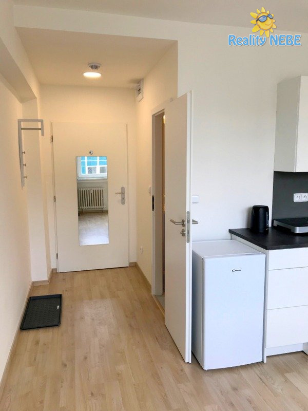 Pronájem bytu 1kk na ulici Peroutkova přímo v Rezidenci V Bloku v Praze 5 Jinonice v blízkosti metra Jinonice. Byt pro 1 osobu od 1.12. Nachází se v 5. patře s výtahem, má vstupní chodbu s věšákem, zrcadlem, koupelna se sprchovým koutem, wc umyvadlem, zrcadlem, žebrovým topením. Pokoj s výhledem na Prahu a kuchyňským koutem s indukčním dvouvařičem, lednicí s mrazničkou, rychlovarnou konvicí, světlem s větrákem a přípojnou na internet. Současný nájemník ponechá většinu nábytku viz. video (šatní skříň, sedačka, stolky). Plovoucí podlaha, plastová okna se žaluziemi. Do domu vcházíte přes prostorné, reprezentativně a moderně společné prostory s recepcí 24h, ostrahou, fitness centrum, relaxační zóna s krbem, terasa se zahradou s grilem a prádelna. Pračka a sušička ve společných částech domu. Byt je pro 1 osobu. Parkovací stání za příplatek.