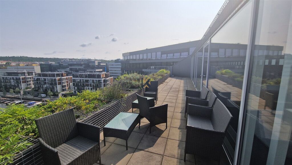 BEZ PROVIZE! Pronajměte si moderní kancelářské prostory o ploše 249 m² v prestižním komplexu DOCK IN TWO, jen pár kroků od Vltavy. Součástí jednotky je soukromá terasa 42 m² s přímým vstupem z kanceláře v 5. patře – ideální pro odpočinek nebo neformální setkání. K dispozici je vlastní kuchyňka, privátní vstup, možnost nábytku, flexibilní uspořádání a až 3 parkovací stání.