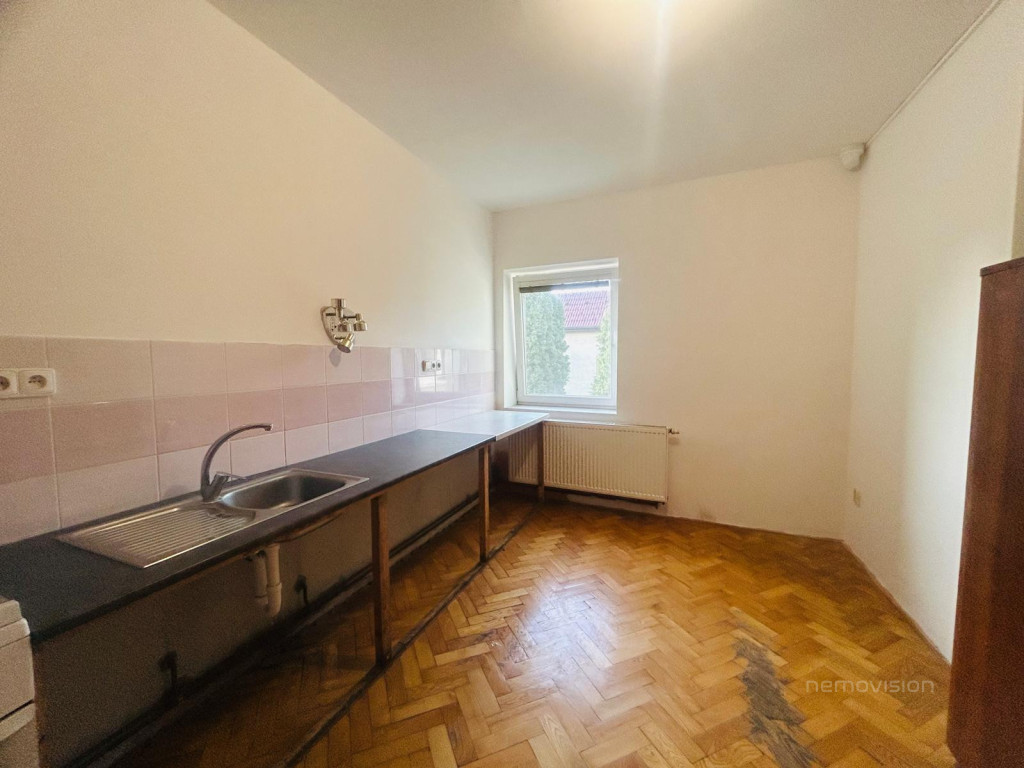 Byt tvoří tři prostorné pokoje, z nichž hlavní obývací místnost přirozeně navazuje na další dva pokoje. Všechny mají dostatek prostoru i světla, takže si je můžete přizpůsobit svým potřebám — ať už jako ložnici, dětský pokoj nebo pracovnu. K dispozici je také prostorná chodba a menší dvorek, který nabízí možnost příjemného posezení venku.