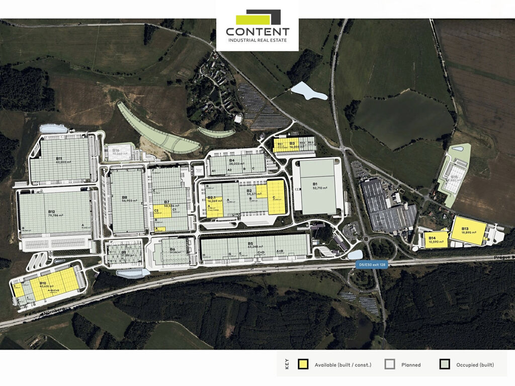 - moderní komerční park přímo u D5, EXIT 128,
