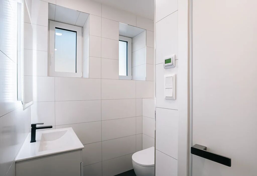 • Koupelny s černými bateriemi a podlahovým vytápěním