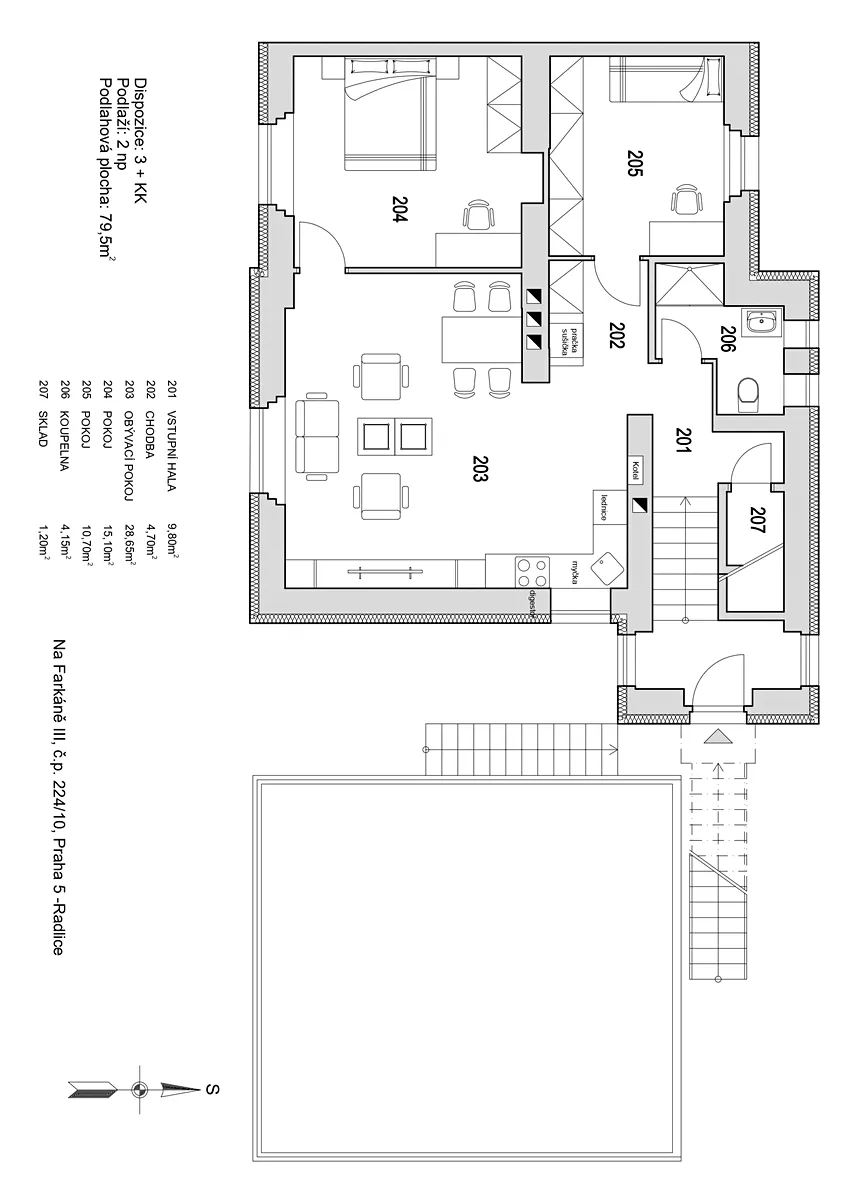 Prodej bytu 3+kk se soukromou zahradou – Na Farkáně III, Praha 5 – Radlice