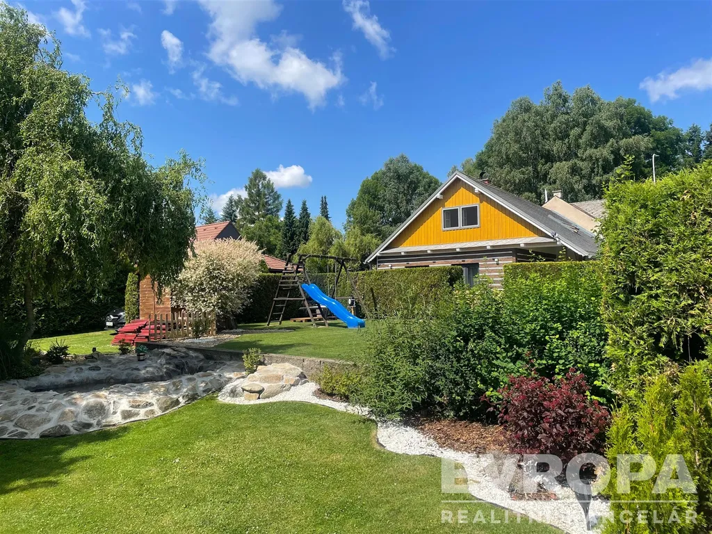 Dvoupatrová chalupa s falešným roubením o zastavěné ploše 197 m2 byla v roce 2022 od základu velmi vkusně zrekonstruována a udržovaná okrasná zahrada s krytou pergolou o ploše 274 m2 a její okolí nabízí maximální komfort.
