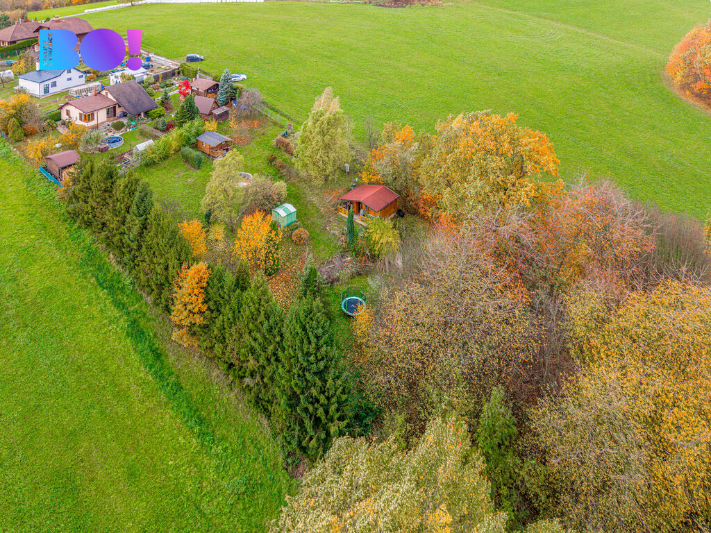 Součástí prodeje jsou celkem tři parcely – stavební pozemek (1 000 m²), zahrada (756 m²) a lesní pozemek (407 m²). Celý pozemek je oplocený, mírně svažitý a nabízí dostatek soukromí i krásné výhledy do zeleně.
