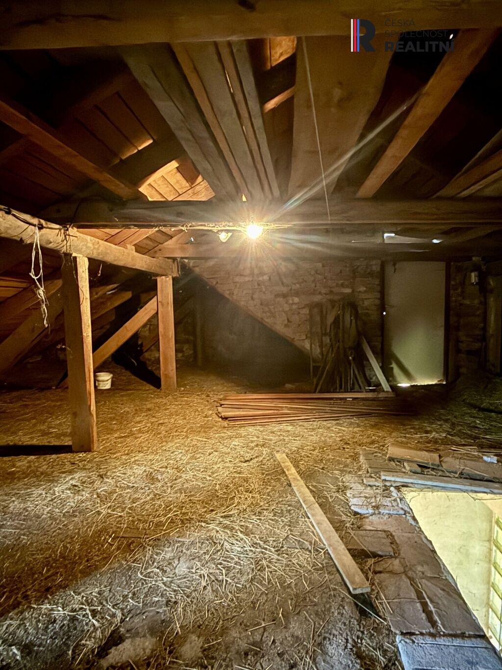 Půda sloužila jako úložný prostor. Podsklepeno 1/4. Objekt je nyní vyklizen viz fotografie, v původním stavu vhodným ke kompletní rekonstrukci.