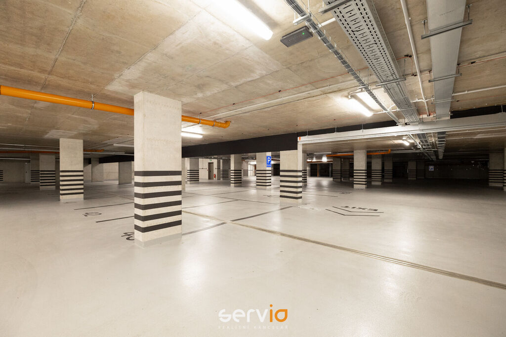 • Velkokapacitní garáže s možností pronájmu parkovacích míst, nabíjecích stanic pro elektromobily, samoobslužné myčky a kolárny se základním servisem pro kola.