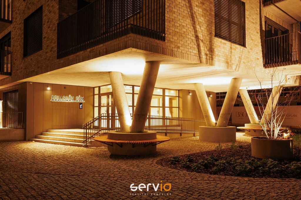 K pronájmu nabízíme elegantní apartmán 2+kk o celkové ploše 41,4 m², doplněný o sklepní kóji 1,8 m². Nachází se v 6. nadzemním podlaží nově vystavěného objektu Eduardův dům, který je součástí prestižního rezidenčního areálu Pekárenský dvůr.