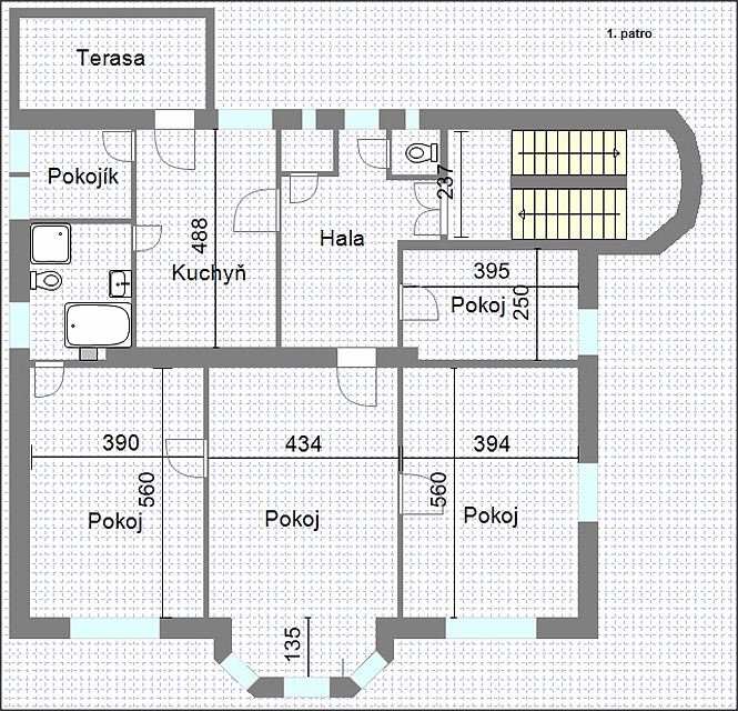 Plocha bytu 123m² + plocha terasy 8,8m² + sklep 5,4m².