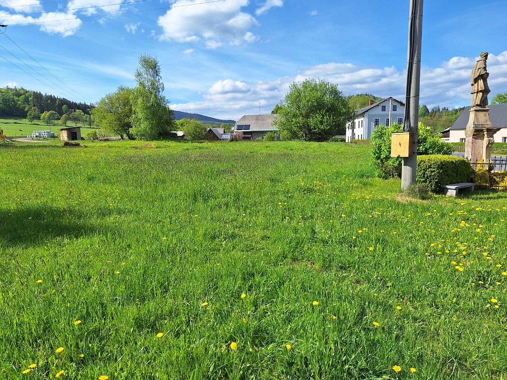 Pozemek má rozlohu 2097m² a nachází se v klidné části obce vzdálené od Rýmařova 5 km. Pozemek je dostupný přímo z asfaltové komunikace, kde se se nachází inženýrské sítě (kanalizace, voda, elektřina). Kolem pozemku je vybudovaný chodník pro pěší ze zámkové dlažby. Pozemek lze rozdělit na dva i tři samostatné menší parcely.