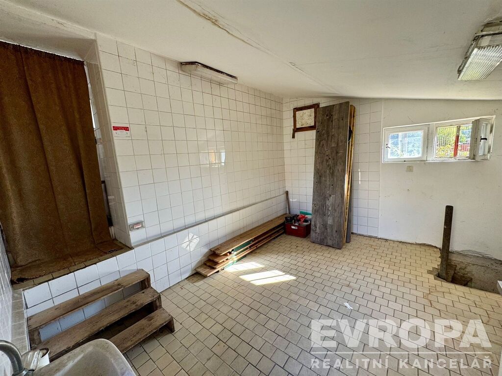 Prostory zahrnují kuchyni, mrazák 4m2, umývárnu, sklady, sklep, sociální zařízení, šatnu a komoru na úklid.