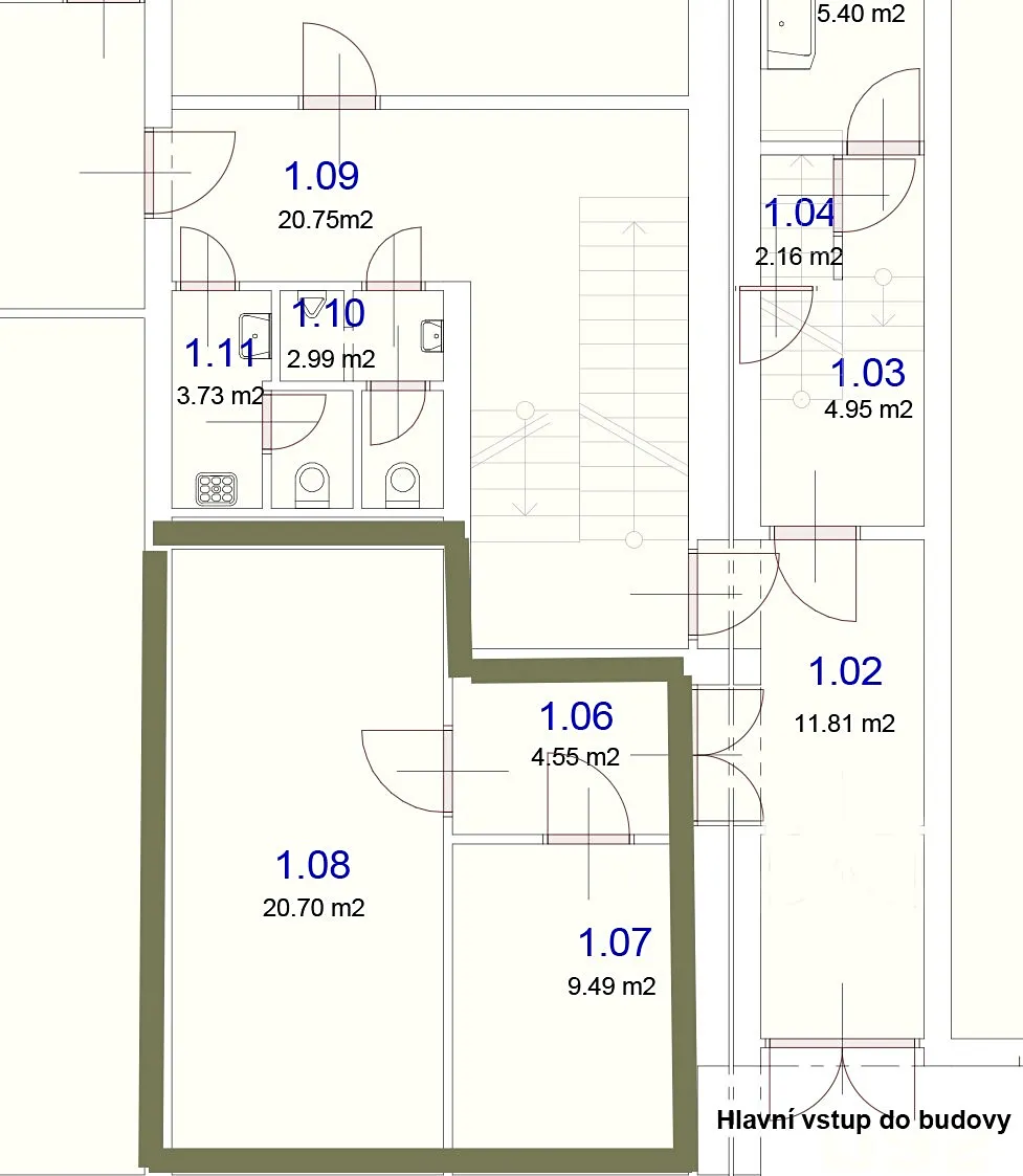 • 2 samostatné místnosti + předsíň