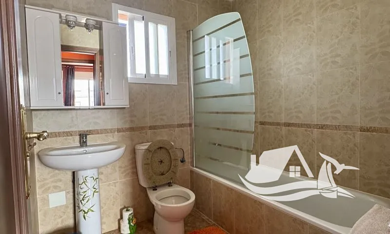 Nemovitost se rozkládá na pozemku o velikosti 180 m² a kromě velkorysé vnitřní dispozice nabízí i přístup k upravenému společnému bazénu. Solárium na střeše domu poskytuje dokonalé místo pro odpočinek, opalování nebo večerní posezení s výhledem na okolí. Vybavení zahrnuje klimatizaci, alarmový systém a veškeré komfortní prvky, které zpříjemní každodenní život u moře.