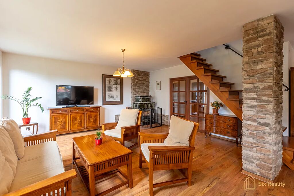 Rodinný dům s dispozicí 6+kk a výměrou 245 m2 celkové užitné plochy disponuje přízemím, obytným podkrovím a suterénem. Z obývacího pokoje v přízemí, kde budete trávit nejvíce času je vstup přímo na zahradu, kde vás uchvátí naprosto famózní výhled do krajiny přes koruny stromů.