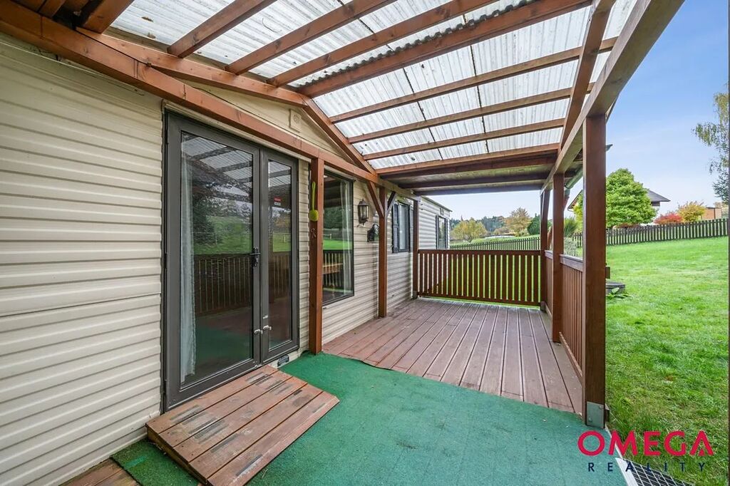 Mobilheim 4+kk: plně vybavený, obývací pokoj s kuchyňským koutem, koupelna se sprchovým koutem, samostatné WC a tři další místnosti, topení krbovými kamny na propan-butan, plastová okna s dvojskly. IS: elektřina, voda z vlastní vrtané studny.