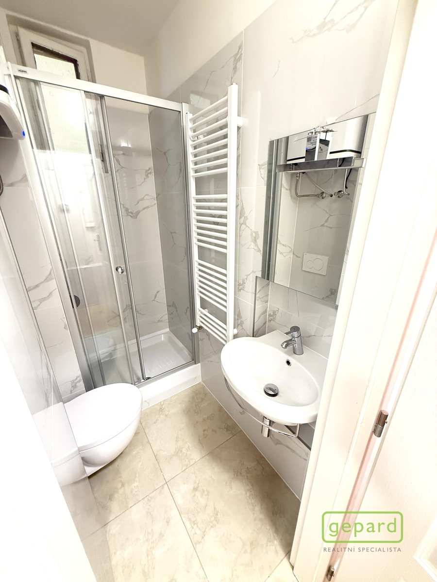 Interiér bytu je po nedávné kompletní rekonstrukci. K dispozici jsou nové podlahy, moderní kuchyňská linka na míru se spotřebiči (varná deska, trouba, digestoř, myčka a pračka) a koupelna se sprchovým koutem v elegantním provedení. Komfortní bydlení doplňuje plynový kotel, který zajišťuje vytápění. Díky vysokým stropům působí byt velmi příjemně, vzdušně a nechybí ani dostatek světla.