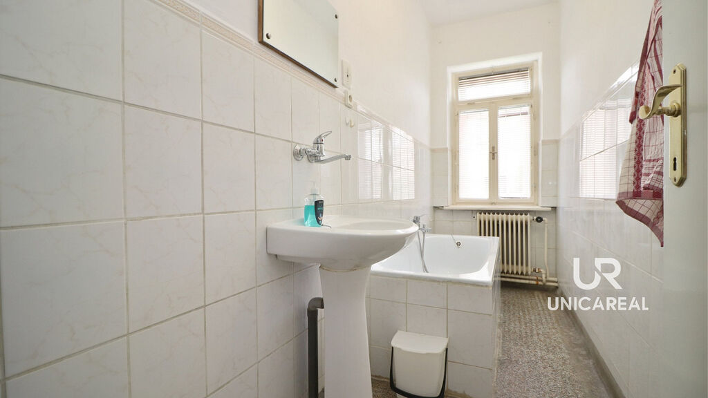 Koupelna 4,5 m² disponuje umyvadlem a vanou. Samostatná toaleta.