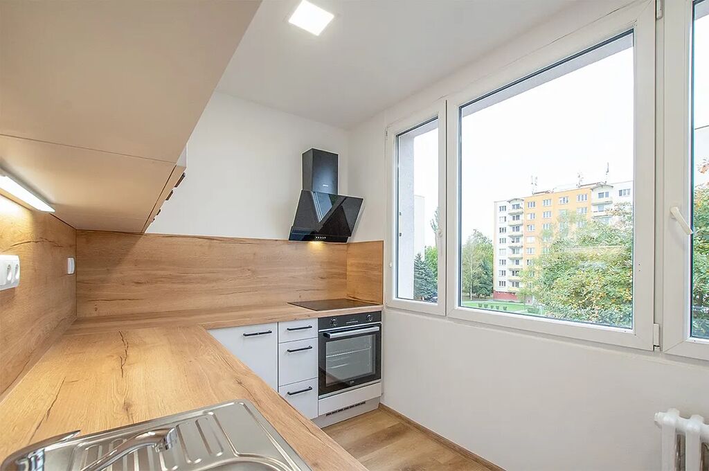 V pečlivě udržovaném bytovém domě na Vás čeká zázemí s nádherně sladěným interiérem, kuchyňskou linkou v moderním designu v oblíbené bílé barvě v kombinaci se dřevem. Pokud chcete bydlet v novém a nejste zrovna milovníky developerských projektů, ideální volba.
