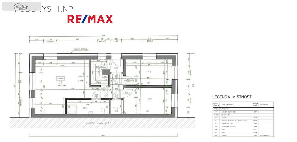 Byt 3+kk o výměře 61,98 m² + zahrádka 17 m²