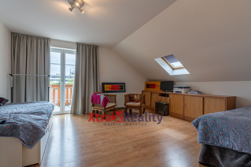 V tomto patře nalezneme šatnu, samostatné WC, koupelnu s umyvadlem, rohovou vanou a sprchovacím koutem a prostornou ložnici, ze které je vstup na zimní zahradu;. Srdcem celého domu je kuchyň propojená s jídelnou a obývacím pokojem o celkové rozloze přes 63m². Nejen pro ranní kávu je zde k dispozici prostorný balkon s překrásným výhledem.