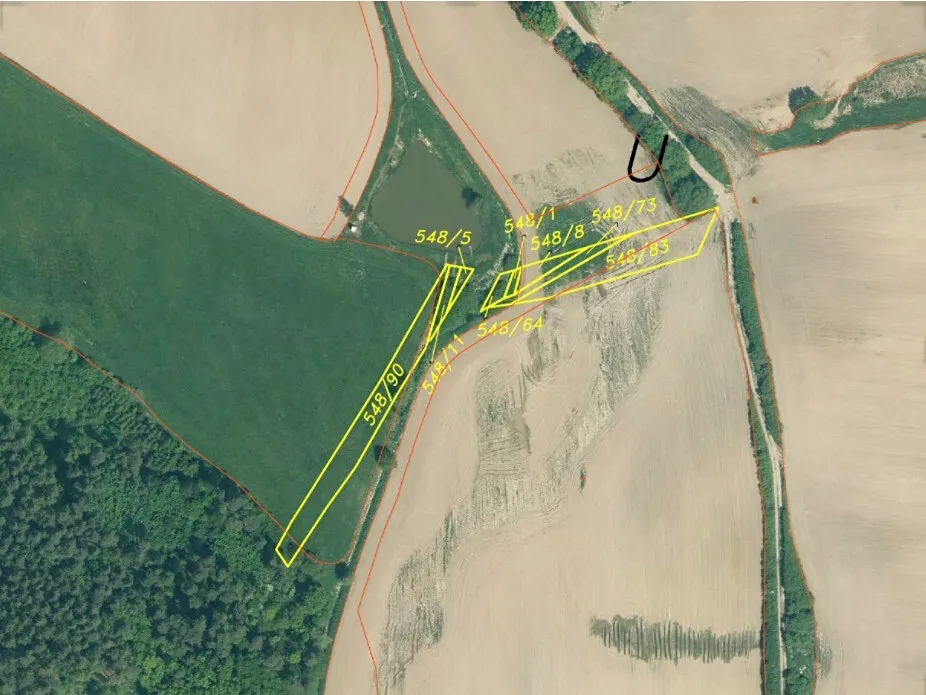 Pozemky jsou dle katastru nemovitostí vedeny jako trvalý travní porost, vodní plocha, orná
