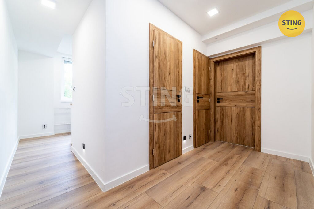 Byt je po zdařilé, moderní a vkusné rekonstrukci. Kuchyňská linka na míru s vestavěnými spotřebiči: horkovzdušná a mikrovlnná trouba, digestoř, indukční varná deska, myčka, příprava na lednici s mrazákem. Koupelna a samostatná toaleta s designovými obklady i sanitou je vybavena vanou, umyvadlovou skřínkou s umyvadlem. Výhodou bytu jsou neprůchozí pokoje. V bytě jsou rozvody elektřiny v mědi, sádrokartonové podhledy s led osvětlením, kvalitní plovoucí podlahy, interiérové dveře včetně zárubní, plastová okna vybavena venkovními, elektricky ovládatelnými roletami na míru.