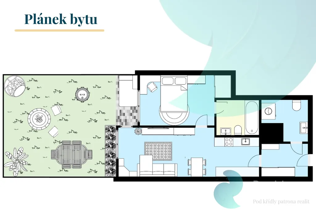 Velkou předností bytu je soukromá předzahrádka o rozloze 85 m², která poskytuje příjemné místo pro odpočinek, letní grilování nebo komfortní zázemí pro domácí mazlíčky.