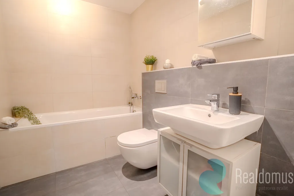 REALDOMUS zprostředkuje prodej světlého a útulného bytu o dispozici 2+kk s užitnou plochou 60 m², který se nachází v přízemí moderní rezidence dokončené v roce 2017 v oblíbené pražské čtvrti Strašnice.