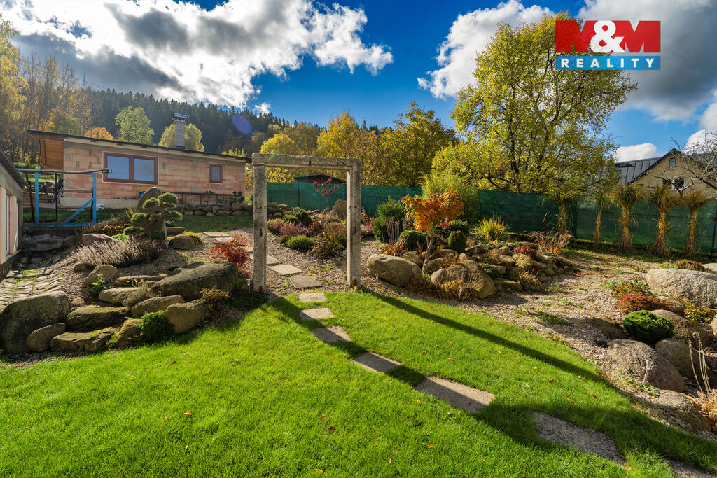 Exkluzivní novostavba rodinného domu ve Smržovce, na jedinečném místě nabízí užitnou plochu 182,77 m² a pozemek 1 592 m² s jihovýchodní orientací zahrady. Dům je TĚSNĚ PŘED DOKONČENÍM, je možnost úprav dle vlastních představ s přípravou na fotovoltaiku. V suterénu se nachází chodba, pokoj pro hosty, prádelna se sušárnou, šatna, sklep, úklidová místnost s WC, koupelna a technická místnost s tepelným čerpadlem, akumulační nádrží 750 l, bojlerem 250 l, elektroinstalací, zabezpečením a kamerovým systémem, vytápěná garáž až pro tři auta. V přízemí 5+kk se zimní zahradou – obývací pokoj s kuchyní a krbem s výměníkem, ložnice, 2 pokoje, pracovna, koupelna s vanou i sprchou, samostatné WC a podlahové topení s oddělenými okruhy. Na pozemku pak krytý bazén délky 10 m s relaxační zónou, dvě terasy, zahradní domek s letní kuchyní, přípravu na saunu a sprchu, vodu ze studny kopané i vrtané, okrasnou zahradu, zámkovou dlažbu, kryté parkování. Dům je vhodný pro větší nebo dvougenerační rodinu.