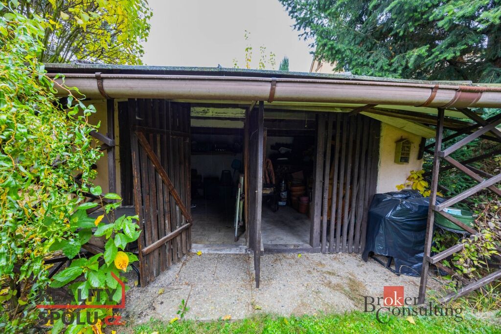Součástí domu je dvojgaráž, dřevník a rozlehlá zahrada se vzrostlými stromy a keři, které vytvářejí příjemnou přírodní kulisu. Na pozemku se nachází také bazén s kompletní infrastrukturou (filtrace, vysavač, ohřev).